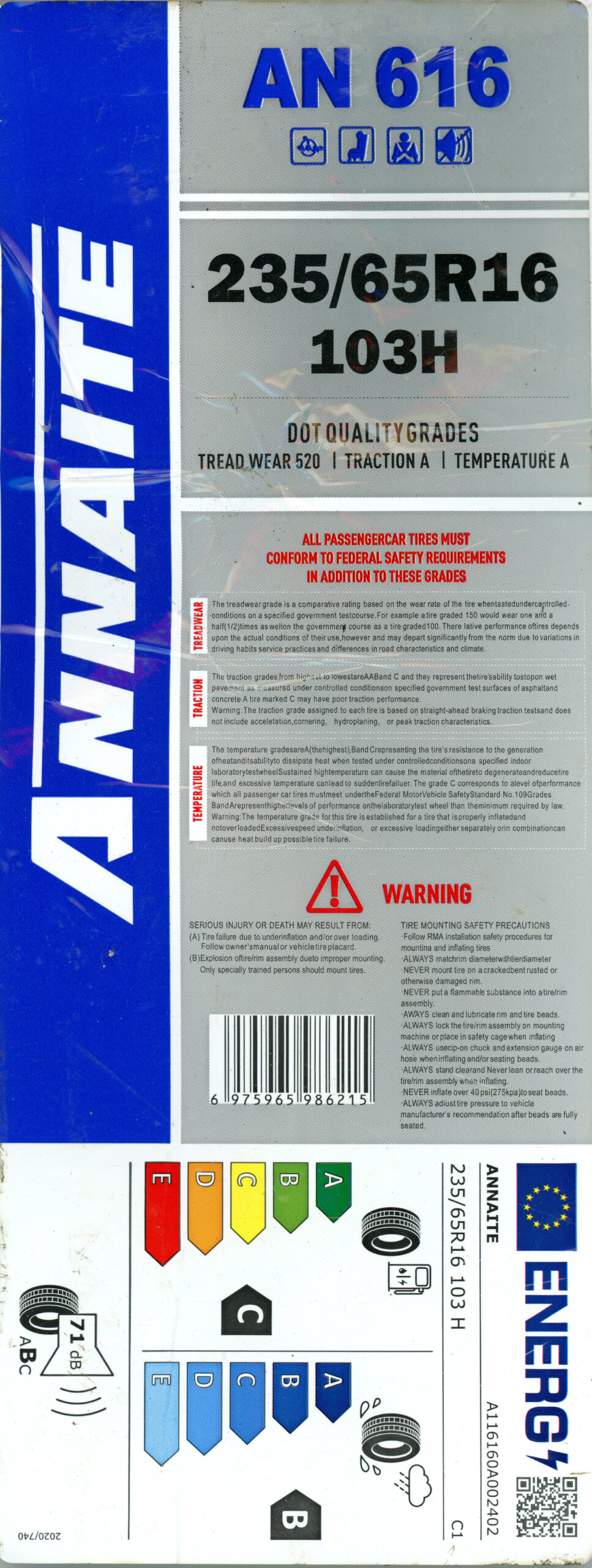 Annaite : 235/65R16